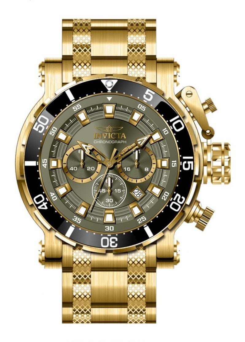 Band Material: Stainless Steel, Band Tone: Gold, Band Width: 26MM, Band Length: 198MM, Crown Type: Push, Case Material: Stainless Steel, Case Tone: Gold, Case Size [mm]: 52, Case Back: Solid, Material of Hands: Brass, Color of Hands: Gold,Luminous, Crystal Type: Flame Fusion, Bezel Material: Stainless Steel,Aluminum, Dial Material: Metal, Dial Color: Green, Dial Pattern: Sun-ray Finish .Purchasing these parts and having a non-authorized repair center open your watch voids all manufacturing warranties. Invicta cannot guarantee the quality standards of an altered timepiece, the standard 3-year limited warranty on Invicta timepieces shall be invalid if the timepiece is serviced at any time by an unauthorized repair center. This includes battery replacements, which must be done at an Invicta authorized repair center in order to maintain the eligibility of the warranty. Please follow the link below to learn more about Invicta's warranty.https://cdn.invictawatch.com/www/files/invicta-warranty-2018.pdf
