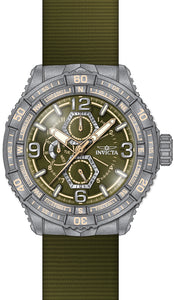 Band Material: Nylon, Band Tone: Olive Green, Band Width: 24MM, Band Length: 190MM, Crown Type: Push, Case Material: Stainless Steel, Case Tone: Titanium,Sandblast,Ivory, Case Size [mm]: 50.00, Case Back: Solid screwed, Material of Hands: Metal, Color of Hands: Luminous,Ivory, Crystal Type: Mineral, Bezel Material: Stainless Steel, Dial Material: Metal, Dial Color: Military Green, Dial Pattern: Sun-ray Finish .Purchasing these parts and having a non-authorized repair center open your watch voids all manufacturing warranties. Invicta cannot guarantee the quality standards of an altered timepiece, the standard 3-year limited warranty on Invicta timepieces shall be invalid if the timepiece is serviced at any time by an unauthorized repair center. This includes battery replacements, which must be done at an Invicta authorized repair center in order to maintain the eligibility of the warranty. Please follow the link below to learn more about Invicta's warranty.https://cdn.invictawatch.com/www/files/invicta-warranty-2018.pdf