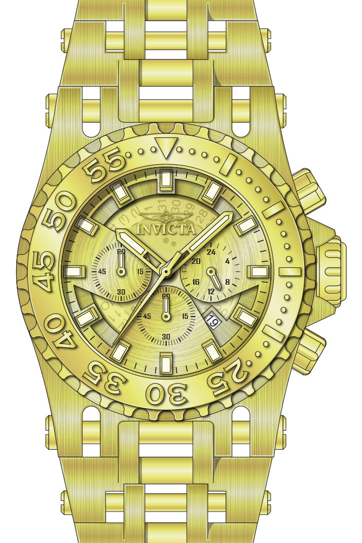 Band Material: Stainless Steel, Band Tone: Gold, Band Width: 35.60MM, Band Length: 210MM, Crown Type: Push, Case Material: Stainless Steel, Case Tone: Gold, Case Size [mm]: 50.00, Case Back: Solid screwed, Material of Hands: Metal, Color of Hands: Gold,Luminous, Crystal Type: Mineral, Bezel Material: Stainless Steel, Dial Material: Metal,Plastic, Dial Color: Gold .Purchasing these parts and having a non-authorized repair center open your watch voids all manufacturing warranties. Invicta cannot guarantee the quality standards of an altered timepiece, the standard 3-year limited warranty on Invicta timepieces shall be invalid if the timepiece is serviced at any time by an unauthorized repair center. This includes battery replacements, which must be done at an Invicta authorized repair center in order to maintain the eligibility of the warranty. Please follow the link below to learn more about Invicta's warranty.https://cdn.invictawatch.com/www/files/invicta-warranty-2018.pdf