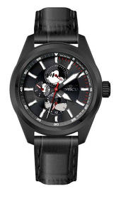 INVICTA Disney Limited Edition Men 46mm Stainless Steel Black Gunmetal dial VH67 Quartz , Band Material: Leather, Band Tone: Black, Band Size [mm]: 22, Band Length [mm]: 200, Buckle Type: Buckle , Crown Type : Push, Case Material : Stainless Steel, Case Tone : Black, Case Size (mm) : 46, Case Back : Solid, Material of Hands : Metal, Color of Hands : White,Red,Gunmetal, Crystal Type : Flame Fusion, Bezel Material : Stainless Steel, Dial Material : Metal, Dial Color : Gunmetal, Dial Pattern : Sun-ray Finish .Purchasing these parts and having a non-authorized repair center open your watch voids all manufacturing warranties. Invicta cannot guarantee the quality standards of an altered timepiece, the standard 3-year limited warranty on Invicta timepieces shall be invalid if the timepiece is serviced at any time by an unauthorized repair center. This includes battery replacements, which must be done at an Invicta authorized repair center in order to maintain the eligibility of the warranty. Please follow the link below to learn more about Invicta's warranty.https://cdn.invictawatch.com/www/files/invicta-warranty-2018.pdf