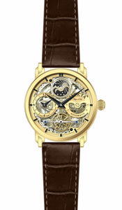 INVICTA Objet D Art Lady 42mm Stainless Steel Gold Gold dial Z-2031 (Nickel) Automatic , Band Material: Leather, Band Tone: Brown, Band Size [mm]: 22, Band Length [mm]: 205, Buckle Type: Buckle , Crown Type : Push, Case Material : Stainless Steel, Case Tone : Gold, Case Size (mm) : 42, Case Back : Exhibition, Material of Hands : Metal, Color of Hands : Black, Crystal Type : Flame Fusion, Bezel Material : None, Dial Material : Metal, Dial Color : Gold, Dial Pattern : None .Purchasing these parts and having a non-authorized repair center open your watch voids all manufacturing warranties. Invicta cannot guarantee the quality standards of an altered timepiece, the standard 3-year limited warranty on Invicta timepieces shall be invalid if the timepiece is serviced at any time by an unauthorized repair center. This includes battery replacements, which must be done at an Invicta authorized repair center in order to maintain the eligibility of the warranty. Please follow the link below to learn more about Invicta's warranty.https://cdn.invictawatch.com/www/files/invicta-warranty-2018.pdf