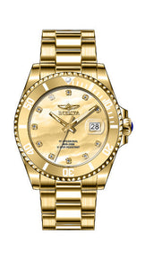 INVICTA Pro Diver Lady 38mm Stainless Steel Gold Gold dial PC32 Quartz , Band Material: Stainless Steel, Band Tone: Gold, Band Size [mm]: 20, Band Length [mm]: 175, Buckle Type: Fold over safety , Crown Type : Push, Case Material : Stainless Steel, Case Tone : Gold, Case Size (mm) : 38, Case Back : Solid, Material of Hands : Metal, Color of Hands : Gold, Crystal Type : Flame Fusion, Bezel Material : Aluminum, Dial Material : Mother of Pearl, Dial Color : Gold, Dial Pattern : None .Purchasing these parts and having a non-authorized repair center open your watch voids all manufacturing warranties. Invicta cannot guarantee the quality standards of an altered timepiece, the standard 3-year limited warranty on Invicta timepieces shall be invalid if the timepiece is serviced at any time by an unauthorized repair center. This includes battery replacements, which must be done at an Invicta authorized repair center in order to maintain the eligibility of the warranty. Please follow the link below to learn more about Invicta's warranty.https://cdn.invictawatch.com/www/files/invicta-warranty-2018.pdf