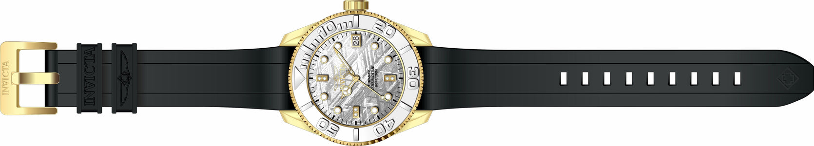 INVICTA Pro Diver Lady 38mm Stainless Steel Gold Rhodium dial NH35A Automatic , Band Material: Silicone, Band Tone: Black, Band Size [mm]: 18, Band Length [mm]: 215, Buckle Type: Buckle , Crown Type : Screw Down, Case Material : Stainless Steel, Case Tone : Gold, Case Size (mm) : 38, Case Back : Exhibition, Material of Hands : Metal, Color of Hands : Gold,Luminous, Crystal Type : Sapphire, Bezel Material : Stainless Steel, Dial Material : Meteorite, Dial Color : Rhodium, Dial Pattern : None .Purchasing these parts and having a non-authorized repair center open your watch voids all manufacturing warranties. Invicta cannot guarantee the quality standards of an altered timepiece, the standard 3-year limited warranty on Invicta timepieces shall be invalid if the timepiece is serviced at any time by an unauthorized repair center. This includes battery replacements, which must be done at an Invicta authorized repair center in order to maintain the eligibility of the warranty. Please follow the link below to learn more about Invicta's warranty.https://cdn.invictawatch.com/www/files/invicta-warranty-2018.pdf