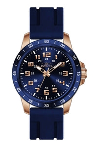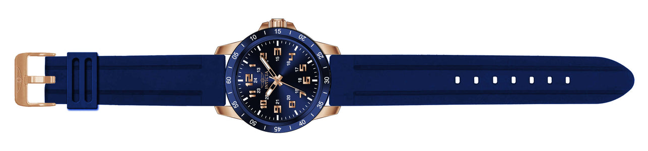 INVICTA Pro Diver Men 45mm Stainless Steel Rose Gold Blue dial PC21 Quartz , Band Material: Silicone, Band Tone: Blue, Band Size [mm]: 22, Band Length [mm]: 210, Buckle Type: Buckle , Crown Type : Push, Case Material : Stainless Steel, Case Tone : Rose Gold, Case Size (mm) : 45, Case Back : Solid, Material of Hands : Metal, Color of Hands : White,Rose Gold, Crystal Type : Flame Fusion, Bezel Material : Stainless Steel, Dial Material : Metal, Dial Color : Blue, Dial Pattern : Sun-ray Finish .Purchasing these parts and having a non-authorized repair center open your watch voids all manufacturing warranties. Invicta cannot guarantee the quality standards of an altered timepiece, the standard 3-year limited warranty on Invicta timepieces shall be invalid if the timepiece is serviced at any time by an unauthorized repair center. This includes battery replacements, which must be done at an Invicta authorized repair center in order to maintain the eligibility of the warranty. Please follow the link below to learn more about Invicta's warranty.https://cdn.invictawatch.com/www/files/invicta-warranty-2018.pdf