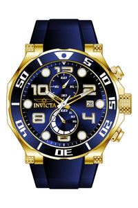 INVICTA Pro Diver Men 50mm Stainless Steel Gold Blue dial VD51 Quartz , Band Material: Silicone, Band Tone: Blue, Band Size [mm]: 50, Band Length [mm]: 220, Buckle Type: Buckle , Crown Type : Push, Case Material : Stainless Steel, Case Tone : Gold, Case Size (mm) : 50, Case Back : Solid, Material of Hands : Metal, Color of Hands : White,Gold, Crystal Type : Flame Fusion, Bezel Material : Stainless Steel, Dial Material : Metal, Dial Color : Blue, Dial Pattern : Sun-ray Finish .Purchasing these parts and having a non-authorized repair center open your watch voids all manufacturing warranties. Invicta cannot guarantee the quality standards of an altered timepiece, the standard 3-year limited warranty on Invicta timepieces shall be invalid if the timepiece is serviced at any time by an unauthorized repair center. This includes battery replacements, which must be done at an Invicta authorized repair center in order to maintain the eligibility of the warranty. Please follow the link below to learn more about Invicta's warranty.https://cdn.invictawatch.com/www/files/invicta-warranty-2018.pdf