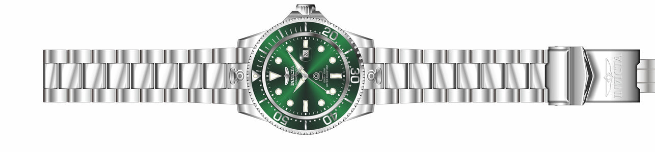 INVICTA Pro Diver Men 54mm Stainless Steel Steel Green dial NH35A Automatic , Band Material: Stainless Steel, Band Tone: Steel, Band Size [mm]: 26, Band Length [mm]: 220, Buckle Type: Fold over safety , Crown Type : Screw Down, Case Material : Stainless Steel, Case Tone : Steel, Case Size (mm) : 54, Case Back : Exhibition, Material of Hands : Metal, Color of Hands : Silver,Luminous, Crystal Type : Mineral, Bezel Material : Stainless Steel, Dial Material : Metal, Dial Color : Green, Dial Pattern : Sun-ray Finish .Purchasing these parts and having a non-authorized repair center open your watch voids all manufacturing warranties. Invicta cannot guarantee the quality standards of an altered timepiece, the standard 3-year limited warranty on Invicta timepieces shall be invalid if the timepiece is serviced at any time by an unauthorized repair center. This includes battery replacements, which must be done at an Invicta authorized repair center in order to maintain the eligibility of the warranty. Please follow the link below to learn more about Invicta's warranty.https://cdn.invictawatch.com/www/files/invicta-warranty-2018.pdf