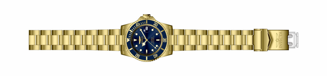 INVICTA Pro Diver Men 40mm Stainless Steel Gold Navy Blue dial NH35A Automatic , Band Material: Stainless Steel, Band Tone: Gold, Band Size [mm]: 20, Band Length [mm]: 205, Buckle Type: Fold over safety , Crown Type : Screw Down, Case Material : Stainless Steel, Case Tone : Gold, Case Size (mm) : 40, Case Back : Exhibition, Material of Hands : Metal, Color of Hands : Gold,Luminous, Crystal Type : Mineral, Bezel Material : Stainless Steel, Dial Material : Metal, Dial Color : Navy Blue, Dial Pattern : Sun-ray Finish .Purchasing these parts and having a non-authorized repair center open your watch voids all manufacturing warranties. Invicta cannot guarantee the quality standards of an altered timepiece, the standard 3-year limited warranty on Invicta timepieces shall be invalid if the timepiece is serviced at any time by an unauthorized repair center. This includes battery replacements, which must be done at an Invicta authorized repair center in order to maintain the eligibility of the warranty. Please follow the link below to learn more about Invicta's warranty.https://cdn.invictawatch.com/www/files/invicta-warranty-2018.pdf