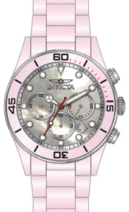 INVICTA Pro Diver Men 42.9mm Stainless Steel + Ceramic Pink + Steel White+Silver dial VD53 Quartz , Band Material: Ceramic, Band Tone: Pink, Band Size [mm]: 22.8, Band Length [mm]: 185, Buckle Type: Butterfly push button , Crown Type : Push, Case Material : Stainless Steel,Ceramic, Case Tone : Pink,Steel, Case Size (mm) : 42.9, Case Back : Solid, Material of Hands : Metal, Color of Hands : Silver,Red,Luminous, Crystal Type : Mineral, Bezel Material : Stainless Steel,Ceramic, Dial Material : Metal,Mother of Pearl,Oyster, Dial Color : White,Silver, Dial Pattern : None .Purchasing these parts and having a non-authorized repair center open your watch voids all manufacturing warranties. Invicta cannot guarantee the quality standards of an altered timepiece, the standard 3-year limited warranty on Invicta timepieces shall be invalid if the timepiece is serviced at any time by an unauthorized repair center. This includes battery replacements, which must be done at an Invicta authorized repair center in order to maintain the eligibility of the warranty. Please follow the link below to learn more about Invicta's warranty.https://cdn.invictawatch.com/www/files/invicta-warranty-2018.pdf