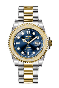 INVICTA Pro Diver Men 43mm Stainless Steel Silver Blue dial PC32 Quartz , Band Material: Stainless Steel, Band Tone: Steel,Gold, Band Size [mm]: 22, Band Length [mm]: 190, Buckle Type: Fold over safety , Crown Type : Push, Case Material : Stainless Steel, Case Tone : Silver, Case Size (mm) : 43, Case Back : Solid, Material of Hands : Metal, Color of Hands : White,Gold, Crystal Type : Flame Fusion, Bezel Material : Stainless Steel,Diamond, Dial Material : Metal, Dial Color : Blue, Dial Pattern : Sun-ray Finish .Purchasing these parts and having a non-authorized repair center open your watch voids all manufacturing warranties. Invicta cannot guarantee the quality standards of an altered timepiece, the standard 3-year limited warranty on Invicta timepieces shall be invalid if the timepiece is serviced at any time by an unauthorized repair center. This includes battery replacements, which must be done at an Invicta authorized repair center in order to maintain the eligibility of the warranty. Please follow the link below to learn more about Invicta's warranty.https://cdn.invictawatch.com/www/files/invicta-warranty-2018.pdf
