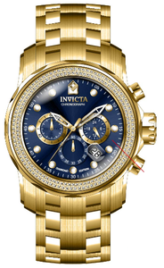 INVICTA Pro Diver Men 48mm Stainless Steel Gold Blue dial VD53 Quartz , Band Material: Stainless Steel, Band Tone: Gold, Band Size [mm]: 26, Band Length [mm]: 190, Buckle Type: Fold over safety , Crown Type : Push, Case Material : Stainless Steel, Case Tone : Gold, Case Size (mm) : 48, Case Back : Solid, Material of Hands : Metal, Color of Hands : White,Gold, Crystal Type : Flame Fusion, Bezel Material : Stainless Steel, Dial Material : Metal, Dial Color : Blue, Dial Pattern : Sun-ray Finish .Purchasing these parts and having a non-authorized repair center open your watch voids all manufacturing warranties. Invicta cannot guarantee the quality standards of an altered timepiece, the standard 3-year limited warranty on Invicta timepieces shall be invalid if the timepiece is serviced at any time by an unauthorized repair center. This includes battery replacements, which must be done at an Invicta authorized repair center in order to maintain the eligibility of the warranty. Please follow the link below to learn more about Invicta's warranty.https://cdn.invictawatch.com/www/files/invicta-warranty-2018.pdf