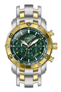 INVICTA Pro Diver Men 50mm Stainless Steel Silver Green dial VD54 Quartz , Band Material: Stainless Steel, Band Tone: Steel,Gold, Band Size [mm]: 26, Band Length [mm]: 190, Buckle Type: Fold over safety , Crown Type : Push, Case Material : Stainless Steel, Case Tone : Silver, Case Size (mm) : 50, Case Back : Solid, Material of Hands : Metal, Color of Hands : White,Gold, Crystal Type : Flame Fusion, Bezel Material : Stainless Steel, Dial Material : Glass Fiber, Dial Color : Green .Purchasing these parts and having a non-authorized repair center open your watch voids all manufacturing warranties. Invicta cannot guarantee the quality standards of an altered timepiece, the standard 3-year limited warranty on Invicta timepieces shall be invalid if the timepiece is serviced at any time by an unauthorized repair center. This includes battery replacements, which must be done at an Invicta authorized repair center in order to maintain the eligibility of the warranty. Please follow the link below to learn more about Invicta's warranty.https://cdn.invictawatch.com/www/files/invicta-warranty-2018.pdf
