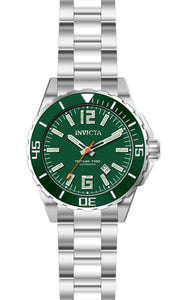 INVICTA Pro Diver Men 50mm Stainless Steel Steel Green dial NH35A Automatic , Band Material: Stainless Steel, Band Tone: Steel, Band Size [mm]: 24, Band Length [mm]: 210, Buckle Type: Fold over safety , Crown Type : Push, Case Material : Stainless Steel, Case Tone : Steel, Case Size (mm) : 50, Case Back : Exhibition, Material of Hands : Metal, Color of Hands : Silver, Crystal Type : Flame Fusion, Bezel Material : Stainless Steel, Dial Material : Metal, Dial Color : Green, Dial Pattern : None .Purchasing these parts and having a non-authorized repair center open your watch voids all manufacturing warranties. Invicta cannot guarantee the quality standards of an altered timepiece, the standard 3-year limited warranty on Invicta timepieces shall be invalid if the timepiece is serviced at any time by an unauthorized repair center. This includes battery replacements, which must be done at an Invicta authorized repair center in order to maintain the eligibility of the warranty. Please follow the link below to learn more about Invicta's warranty.https://cdn.invictawatch.com/www/files/invicta-warranty-2018.pdf