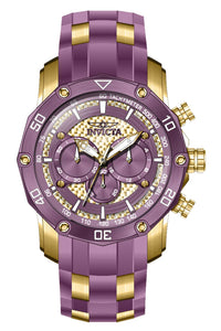 INVICTA Pro Diver Men 50mm Stainless Steel Gold Gold+Purple dial VD54 Quartz , Band Material: Stainless Steel,Silicone, Band Tone: Gold,Purple, Band Size [mm]: 26, Band Length [mm]: 198, Buckle Type: Buckle , Crown Type : Push, Case Material : Stainless Steel, Case Tone : Gold, Case Size (mm) : 50, Case Back : Solid, Material of Hands : Metal, Color of Hands : White,Gold, Crystal Type : Flame Fusion, Bezel Material : Stainless Steel, Dial Material : Metal,Glass Fiber, Dial Color : Gold,Purple .Purchasing these parts and having a non-authorized repair center open your watch voids all manufacturing warranties. Invicta cannot guarantee the quality standards of an altered timepiece, the standard 3-year limited warranty on Invicta timepieces shall be invalid if the timepiece is serviced at any time by an unauthorized repair center. This includes battery replacements, which must be done at an Invicta authorized repair center in order to maintain the eligibility of the warranty. Please follow the link below to learn more about Invicta's warranty.https://cdn.invictawatch.com/www/files/invicta-warranty-2018.pdf