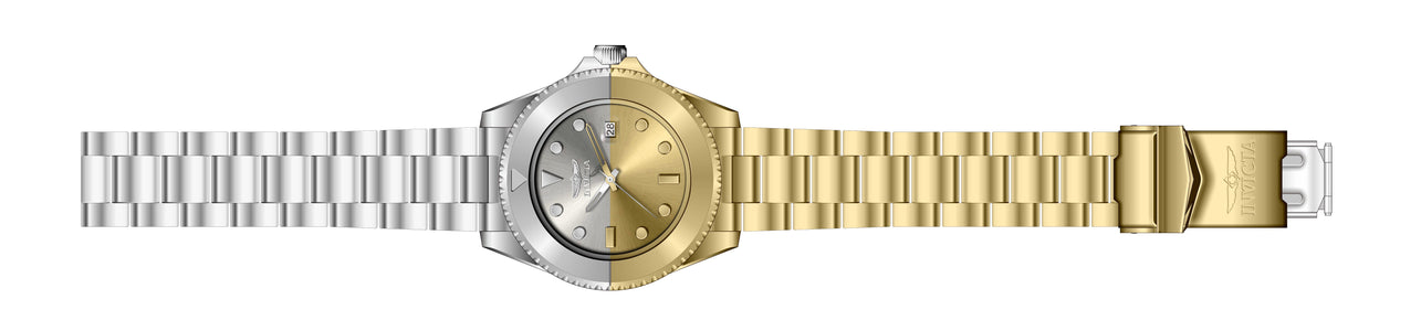 INVICTA Pro Diver Men 47mm Stainless Steel Gold + Steel Silver+Gold dial NH35A Automatic , Band Material: Stainless Steel, Band Tone: Steel,Gold, Band Size [mm]: 22, Band Length [mm]: 210, Buckle Type: Fold over safety , Crown Type : Screw Down, Case Material : Stainless Steel, Case Tone : Gold,Steel, Case Size (mm) : 47, Case Back : Exhibition, Material of Hands : Metal, Color of Hands : Silver,Gold, Crystal Type : Mineral, Bezel Material : Stainless Steel, Dial Material : Metal, Dial Color : Silver,Gold, Dial Pattern : Sun-ray Finish .Purchasing these parts and having a non-authorized repair center open your watch voids all manufacturing warranties. Invicta cannot guarantee the quality standards of an altered timepiece, the standard 3-year limited warranty on Invicta timepieces shall be invalid if the timepiece is serviced at any time by an unauthorized repair center. This includes battery replacements, which must be done at an Invicta authorized repair center in order to maintain the eligibility of the warranty. Please follow the link below to learn more about Invicta's warranty.https://cdn.invictawatch.com/www/files/invicta-warranty-2018.pdf