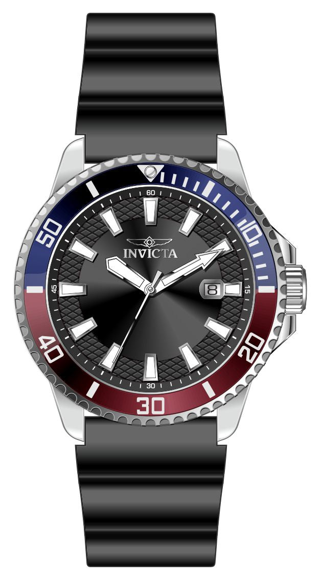 Band Material: Silicone, Band Tone: Black, Band Width: 22MM, Band Length: 225MM, Crown Type: Push, Case Material: Stainless Steel, Case Tone: Steel, Case Size [mm]: 45, Crystal Type: Flame Fusion, Dial Material: Brass, Dial Color: Black .Purchasing these parts and having a non-authorized repair center open your watch voids all manufacturing warranties. Invicta cannot guarantee the quality standards of an altered timepiece, the standard 3-year limited warranty on Invicta timepieces shall be invalid if the timepiece is serviced at any time by an unauthorized repair center. This includes battery replacements, which must be done at an Invicta authorized repair center in order to maintain the eligibility of the warranty. Please follow the link below to learn more about Invicta's warranty.https://cdn.invictawatch.com/www/files/invicta-warranty-2018.pdf