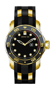 Band Material: Stainless Steel,Silicone, Band Tone: Gold,Black, Band Width: 26MM, Band Length: 220MM, Crown Type: Push, Case Material: Stainless Steel, Case Tone: Gold, Case Size [mm]: 48, Crystal Type: Flame Fusion, Dial Material: Brass, Dial Color: Black .Purchasing these parts and having a non-authorized repair center open your watch voids all manufacturing warranties. Invicta cannot guarantee the quality standards of an altered timepiece, the standard 3-year limited warranty on Invicta timepieces shall be invalid if the timepiece is serviced at any time by an unauthorized repair center. This includes battery replacements, which must be done at an Invicta authorized repair center in order to maintain the eligibility of the warranty. Please follow the link below to learn more about Invicta's warranty.https://cdn.invictawatch.com/www/files/invicta-warranty-2018.pdf