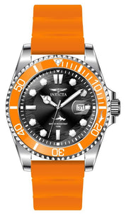 Band Material: Silicone, Band Tone: Orange, Band Width: 22MM, Band Length: 210MM, Crown Type: Screw Down, Case Material: Stainless Steel, Case Tone: Steel, Case Size [mm]: 43, Case Back: Solid, Material of Hands: Metal, Color of Hands: Silver, Crystal Type: Flame Fusion, Bezel Material: Stainless Steel,Aluminum, Dial Material: Metal, Dial Color: Black .Purchasing these parts and having a non-authorized repair center open your watch voids all manufacturing warranties. Invicta cannot guarantee the quality standards of an altered timepiece, the standard 3-year limited warranty on Invicta timepieces shall be invalid if the timepiece is serviced at any time by an unauthorized repair center. This includes battery replacements, which must be done at an Invicta authorized repair center in order to maintain the eligibility of the warranty. Please follow the link below to learn more about Invicta's warranty.https://cdn.invictawatch.com/www/files/invicta-warranty-2018.pdf