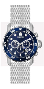 Band Material: Stainless Steel, Band Tone: Steel, Band Width: 26MM, Band Length: 186MM, Crown Type: Push, Case Material: Stainless Steel, Case Tone: Steel, Case Size [mm]: 48, Crystal Type: Flame Fusion, Dial Material: Brass, Dial Color: Blue .Purchasing these parts and having a non-authorized repair center open your watch voids all manufacturing warranties. Invicta cannot guarantee the quality standards of an altered timepiece, the standard 3-year limited warranty on Invicta timepieces shall be invalid if the timepiece is serviced at any time by an unauthorized repair center. This includes battery replacements, which must be done at an Invicta authorized repair center in order to maintain the eligibility of the warranty. Please follow the link below to learn more about Invicta's warranty.https://cdn.invictawatch.com/www/files/invicta-warranty-2018.pdf