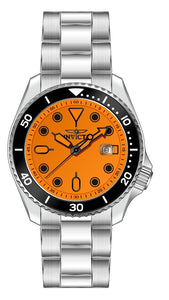 Band Material: Stainless Steel, Band Tone: Steel, Band Width: 24MM, Band Length: 186MM, Crown Type: Push, Case Material: Stainless Steel, Case Tone: Steel, Case Size [mm]: 46, Case Back: Solid, Material of Hands: Brass, Color of Hands: Black,Orange,Luminous, Crystal Type: Flame Fusion, Bezel Material: Aluminum, Dial Material: Brass, Dial Color: Orange, Dial Pattern: None .Purchasing these parts and having a non-authorized repair center open your watch voids all manufacturing warranties. Invicta cannot guarantee the quality standards of an altered timepiece, the standard 3-year limited warranty on Invicta timepieces shall be invalid if the timepiece is serviced at any time by an unauthorized repair center. This includes battery replacements, which must be done at an Invicta authorized repair center in order to maintain the eligibility of the warranty. Please follow the link below to learn more about Invicta's warranty.https://cdn.invictawatch.com/www/files/invicta-warranty-2018.pdf