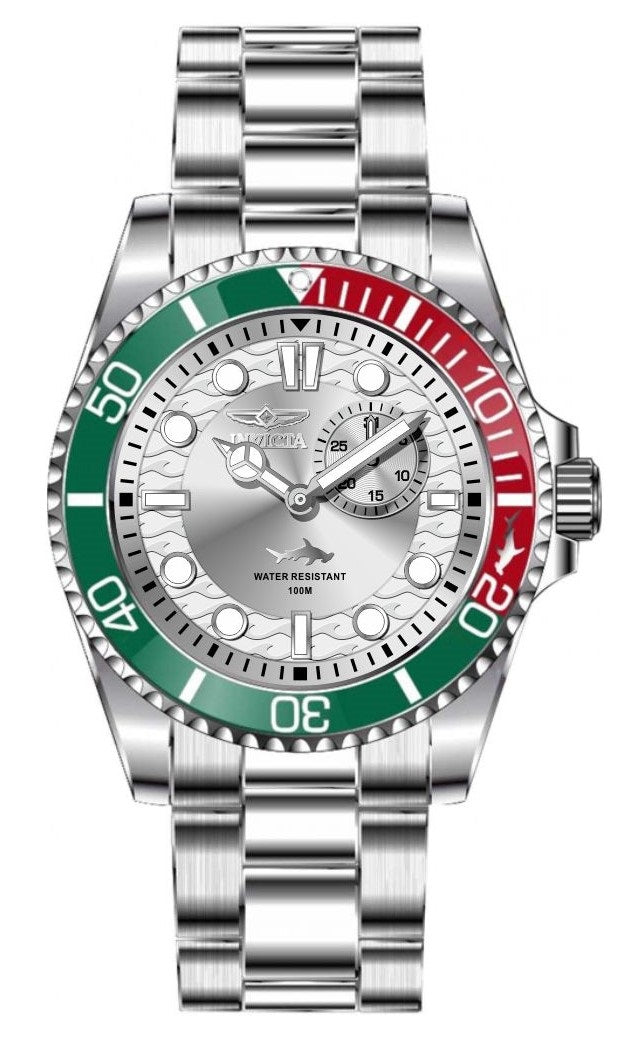 Band Material: Stainless Steel, Band Tone: Steel, Band Width: 22MM, Band Length: 184MM, Crown Type: Screw Down, Case Material: Stainless Steel, Case Tone: Steel, Case Size [mm]: 43, Case Back: Solid, Material of Hands: Brass, Color of Hands: Silver,Luminous, Crystal Type: Mineral, Bezel Material: Stainless Steel,Aluminum, Dial Material: Brass, Dial Color: Silver, Dial Pattern: Embossed pattern .Purchasing these parts and having a non-authorized repair center open your watch voids all manufacturing warranties. Invicta cannot guarantee the quality standards of an altered timepiece, the standard 3-year limited warranty on Invicta timepieces shall be invalid if the timepiece is serviced at any time by an unauthorized repair center. This includes battery replacements, which must be done at an Invicta authorized repair center in order to maintain the eligibility of the warranty. Please follow the link below to learn more about Invicta's warranty.https://cdn.invictawatch.com/www/files/invicta-warranty-2018.pdf