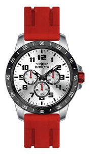 Band Material: Silicone, Band Tone: Red, Band Width: 22MM, Band Length: 220MM, Crown Type: Push, Case Material: Stainless Steel, Case Tone: Steel, Case Size [mm]: 45, Case Back: Solid, Material of Hands: Brass, Color of Hands: Black,Red,Luminous, Crystal Type: Mineral, Bezel Material: Stainless Steel, Dial Material: Brass, Dial Color: Silver, Dial Pattern: Sun-ray Finish .Purchasing these parts and having a non-authorized repair center open your watch voids all manufacturing warranties. Invicta cannot guarantee the quality standards of an altered timepiece, the standard 3-year limited warranty on Invicta timepieces shall be invalid if the timepiece is serviced at any time by an unauthorized repair center. This includes battery replacements, which must be done at an Invicta authorized repair center in order to maintain the eligibility of the warranty. Please follow the link below to learn more about Invicta's warranty.https://cdn.invictawatch.com/www/files/invicta-warranty-2018.pdf