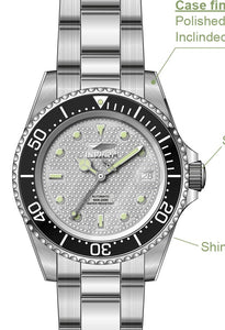 Band Material: Stainless Steel, Band Tone: Steel, Band Width: 20MM, Band Length: 205MM, Crown Type: Screw Down, Case Material: Stainless Steel, Case Tone: Steel, Case Size [mm]: 40, Case Back: Exhibition, Material of Hands: Metal, Color of Hands: Steel, Crystal Type: Mineral, Bezel Material: Stainless Steel, Dial Material: Metal, Dial Color: Silver .Purchasing these parts and having a non-authorized repair center open your watch voids all manufacturing warranties. Invicta cannot guarantee the quality standards of an altered timepiece, the standard 3-year limited warranty on Invicta timepieces shall be invalid if the timepiece is serviced at any time by an unauthorized repair center. This includes battery replacements, which must be done at an Invicta authorized repair center in order to maintain the eligibility of the warranty. Please follow the link below to learn more about Invicta's warranty.https://cdn.invictawatch.com/www/files/invicta-warranty-2018.pdf