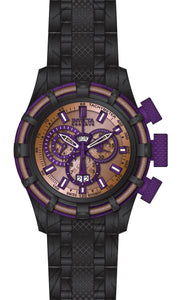 Band Material: Stainless Steel, Band Tone: Black, Band Width: 26MM, Band Length: 205MM, Buckle Type: Fold over safety, Clasp Type: Safety,Deployment, Crown Type : Screw Down, Case Material : Stainless Steel, Case Tone : Rose Gold,Black,Purple, Case Size [mm] : 50, Case Back : Solid, Material of Hands : Metal, Color of Hands : Purple,Luminous, Crystal Type : Flame Fusion, Bezel Material : Stainless Steel, Dial Material : Metal,Plastic, Dial Color : Rose Gold,Purple .Purchasing these parts and having a non-authorized repair center open your watch voids all manufacturing warranties. Invicta cannot guarantee the quality standards of an altered timepiece, the standard 3-year limited warranty on Invicta timepieces shall be invalid if the timepiece is serviced at any time by an unauthorized repair center. This includes battery replacements, which must be done at an Invicta authorized repair center in order to maintain the eligibility of the warranty. Please follow the link below to learn more about Invicta's warranty.https://cdn.invictawatch.com/www/files/invicta-warranty-2018.pdf