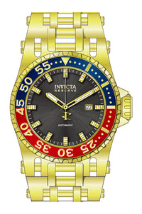 INVICTA Reserve Men 50mm Stainless Steel + Aluminum Gold + Blue + Red Black dial NH35A Automatic , Band Material: Stainless Steel, Band Tone: Gold, Band Size [mm]: 35.6, Band Length [mm]: 210, Buckle Type: Fold over safety , Crown Type : Screw Down, Case Material : Stainless Steel,Aluminum, Case Tone : Gold,Blue,Red, Case Size (mm) : 50, Case Back : Exhibition, Material of Hands : Metal, Color of Hands : Gold,Luminous, Crystal Type : Flame Fusion, Bezel Material : Stainless Steel,Aluminum, Dial Material : Metal, Dial Color : Black, Dial Pattern : Sun-ray Finish .Purchasing these parts and having a non-authorized repair center open your watch voids all manufacturing warranties. Invicta cannot guarantee the quality standards of an altered timepiece, the standard 3-year limited warranty on Invicta timepieces shall be invalid if the timepiece is serviced at any time by an unauthorized repair center. This includes battery replacements, which must be done at an Invicta authorized repair center in order to maintain the eligibility of the warranty. Please follow the link below to learn more about Invicta's warranty.https://cdn.invictawatch.com/www/files/invicta-warranty-2018.pdf