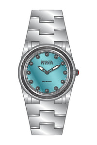 INVICTA Reserve Lady 38mm Stainless Steel Silver White+Turquoise dial 1062 Quartz , Band Material: Stainless Steel, Band Tone: Steel, Band Size [mm]: 28.2, Band Length [mm]: 180, Buckle Type: Butterfly push button , Crown Type : Push, Case Material : Stainless Steel, Case Tone : Silver, Case Size (mm) : 38, Case Back : Solid, Material of Hands : Metal, Color of Hands : Luminous,Gunmetal, Crystal Type : Flame Fusion, Bezel Material : Stainless Steel, Dial Material : Metal,Enamel, Dial Color : White,Turquoise, Dial Pattern : None .Purchasing these parts and having a non-authorized repair center open your watch voids all manufacturing warranties. Invicta cannot guarantee the quality standards of an altered timepiece, the standard 3-year limited warranty on Invicta timepieces shall be invalid if the timepiece is serviced at any time by an unauthorized repair center. This includes battery replacements, which must be done at an Invicta authorized repair center in order to maintain the eligibility of the warranty. Please follow the link below to learn more about Invicta's warranty.https://cdn.invictawatch.com/www/files/invicta-warranty-2018.pdf