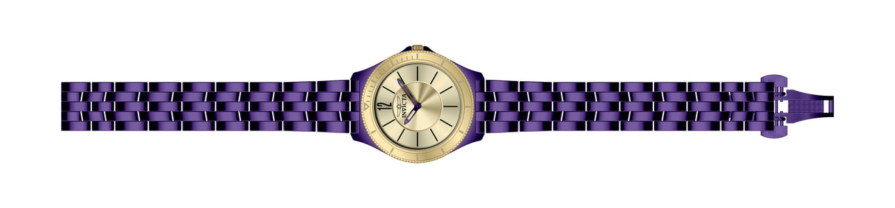 INVICTA Reserve Lady 38mm Stainless Steel Gold + Purple Champagne dial 1062 Quartz , Band Material: Stainless Steel, Band Tone: Purple, Band Size [mm]: 18, Band Length [mm]: 195, Buckle Type: Butterfly push button , Crown Type : Push, Case Material : Stainless Steel, Case Tone : Gold,Purple, Case Size (mm) : 38, Case Back : Solid, Material of Hands : Metal, Color of Hands : Purple, Crystal Type : Sapphire, Bezel Material : Stainless Steel, Dial Material : Metal, Dial Color : Champagne, Dial Pattern : Sun-ray Finish .Purchasing these parts and having a non-authorized repair center open your watch voids all manufacturing warranties. Invicta cannot guarantee the quality standards of an altered timepiece, the standard 3-year limited warranty on Invicta timepieces shall be invalid if the timepiece is serviced at any time by an unauthorized repair center. This includes battery replacements, which must be done at an Invicta authorized repair center in order to maintain the eligibility of the warranty. Please follow the link below to learn more about Invicta's warranty.https://cdn.invictawatch.com/www/files/invicta-warranty-2018.pdf