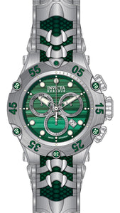 Band Material: Stainless Steel,Silicone, Band Tone: Steel,Green, Band Width: 32MM, Band Length: 210MM, Crown Type: Screw Down, Case Material: Stainless Steel, Case Tone: Green,Steel, Case Size [mm]: 54.00, Case Back: Solid, Material of Hands: Metal, Color of Hands: Silver,Luminous, Crystal Type: Flame Fusion, Bezel Material: Stainless Steel, Dial Material: Metal,Malachite, Dial Color: Green .Purchasing these parts and having a non-authorized repair center open your watch voids all manufacturing warranties. Invicta cannot guarantee the quality standards of an altered timepiece, the standard 3-year limited warranty on Invicta timepieces shall be invalid if the timepiece is serviced at any time by an unauthorized repair center. This includes battery replacements, which must be done at an Invicta authorized repair center in order to maintain the eligibility of the warranty. Please follow the link below to learn more about Invicta's warranty.https://cdn.invictawatch.com/www/files/invicta-warranty-2018.pdf