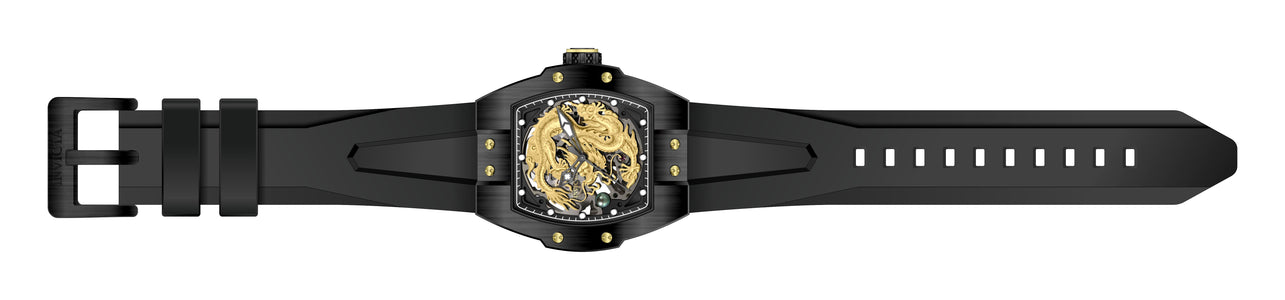 Band Material: Silicone, Band Tone: Black, Band Width: 26MM, Band Length: 210MM, Crown Type: Push, Case Material: Stainless Steel, Case Tone: Gold,Black, Case Size [mm]: 44, Case Back: Exhibition, Material of Hands: Metal, Color of Hands: Luminous,Gunmetal, Crystal Type: Flame Fusion, Dial Material: Metal,Plastic, Dial Color: Black,Gold,Transparent, Dial Pattern: Skeleton Design .Purchasing these parts and having a non-authorized repair center open your watch voids all manufacturing warranties. Invicta cannot guarantee the quality standards of an altered timepiece, the standard 3-year limited warranty on Invicta timepieces shall be invalid if the timepiece is serviced at any time by an unauthorized repair center. This includes battery replacements, which must be done at an Invicta authorized repair center in order to maintain the eligibility of the warranty. Please follow the link below to learn more about Invicta's warranty.https://cdn.invictawatch.com/www/files/invicta-warranty-2018.pdf