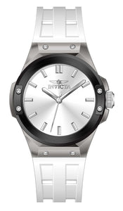 Band Material: Silicone, Band Tone: White, Band Width: 26MM, Band Length: 220MM, Crown Type: Push, Case Material: Plastic, Case Tone: Transparent, Case Size [mm]: 45, Case Back: Solid, Material of Hands: Aluminum, Color of Hands: Silver, Crystal Type: Mineral, Bezel Material: Stainless Steel, Dial Material: Brass, Dial Color: Silver, Dial Pattern: Sun-ray Finish .Purchasing these parts and having a non-authorized repair center open your watch voids all manufacturing warranties. Invicta cannot guarantee the quality standards of an altered timepiece, the standard 3-year limited warranty on Invicta timepieces shall be invalid if the timepiece is serviced at any time by an unauthorized repair center. This includes battery replacements, which must be done at an Invicta authorized repair center in order to maintain the eligibility of the warranty. Please follow the link below to learn more about Invicta's warranty.https://cdn.invictawatch.com/www/files/invicta-warranty-2018.pdf