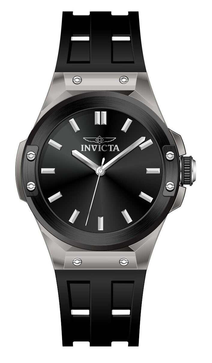 Band Material: Silicone, Band Tone: Black, Band Width: 26MM, Band Length: 220MM, Crown Type: Push, Case Material: Plastic, Case Tone: Transparent, Case Size [mm]: 45, Case Back: Solid, Material of Hands: Aluminum, Color of Hands: Silver, Crystal Type: Mineral, Bezel Material: Stainless Steel, Dial Material: Brass, Dial Color: Black, Dial Pattern: Sun-ray Finish .Purchasing these parts and having a non-authorized repair center open your watch voids all manufacturing warranties. Invicta cannot guarantee the quality standards of an altered timepiece, the standard 3-year limited warranty on Invicta timepieces shall be invalid if the timepiece is serviced at any time by an unauthorized repair center. This includes battery replacements, which must be done at an Invicta authorized repair center in order to maintain the eligibility of the warranty. Please follow the link below to learn more about Invicta's warranty.https://cdn.invictawatch.com/www/files/invicta-warranty-2018.pdf