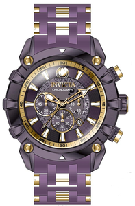 INVICTA Sea Spider Men 54mm Stainless Steel Purple White+Gold+Purple dial VD53 Quartz , Band Material: Stainless Steel,Silicone, Band Tone: Gold,Purple, Band Size [mm]: 26, Band Length [mm]: 210, Buckle Type: Fold over safety , Crown Type : Push, Case Material : Stainless Steel, Case Tone : Purple, Case Size (mm) : 54, Case Back : Solid, Material of Hands : Metal, Color of Hands : White,Gold, Crystal Type : Flame Fusion, Bezel Material : Stainless Steel, Dial Material : Metal, Dial Color : White,Gold,Purple, Dial Pattern : Sun-ray Finish .Purchasing these parts and having a non-authorized repair center open your watch voids all manufacturing warranties. Invicta cannot guarantee the quality standards of an altered timepiece, the standard 3-year limited warranty on Invicta timepieces shall be invalid if the timepiece is serviced at any time by an unauthorized repair center. This includes battery replacements, which must be done at an Invicta authorized repair center in order to maintain the eligibility of the warranty. Please follow the link below to learn more about Invicta's warranty.https://cdn.invictawatch.com/www/files/invicta-warranty-2018.pdf