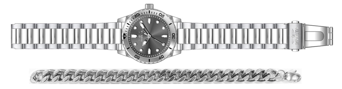 Band Material: Stainless Steel, Band Tone: Steel, Band Width: 22MM, Band Length: 186MM, Crown Type: Push, Case Material: Stainless Steel, Case Tone: Steel, Case Size [mm]: 43, Color of Hands: Luminous, Silver, Crystal Type: Mineral, Bezel Material: None, Dial Material: Brass, Dial Color: Grey .Purchasing these parts and having a non-authorized repair center open your watch voids all manufacturing warranties. Invicta cannot guarantee the quality standards of an altered timepiece, the standard 3-year limited warranty on Invicta timepieces shall be invalid if the timepiece is serviced at any time by an unauthorized repair center. This includes battery replacements, which must be done at an Invicta authorized repair center in order to maintain the eligibility of the warranty. Please follow the link below to learn more about Invicta's warranty.https://cdn.invictawatch.com/www/files/invicta-warranty-2018.pdf