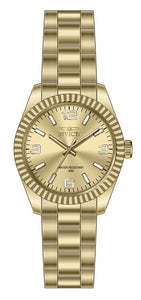 Band Material: Stainless Steel, Band Tone: Gold, Band Width: 18MM, Band Length: 166MM, Crown Type: Push, Case Material: Stainless Steel, Case Tone: Gold, Case Size [mm]: 36, Crystal Type: Mineral, Dial Material: Brass, Dial Color: Gold .Purchasing these parts and having a non-authorized repair center open your watch voids all manufacturing warranties. Invicta cannot guarantee the quality standards of an altered timepiece, the standard 3-year limited warranty on Invicta timepieces shall be invalid if the timepiece is serviced at any time by an unauthorized repair center. This includes battery replacements, which must be done at an Invicta authorized repair center in order to maintain the eligibility of the warranty. Please follow the link below to learn more about Invicta's warranty.https://cdn.invictawatch.com/www/files/invicta-warranty-2018.pdf
