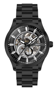 Band Material: Stainless Steel, Band Tone: Black, Band Width: 22MM, Band Length: 200MM, Crown Type: Push, Case Material: Stainless Steel, Case Tone: Black, Case Size [mm]: 45, Case Back: Exhibition, Material of Hands: Metal, Color of Hands: Black, Crystal Type: Flame Fusion, Bezel Material: Stainless Steel, Dial Material: Metal, Dial Color: Black,Silver, Dial Pattern: None .Purchasing these parts and having a non-authorized repair center open your watch voids all manufacturing warranties. Invicta cannot guarantee the quality standards of an altered timepiece, the standard 3-year limited warranty on Invicta timepieces shall be invalid if the timepiece is serviced at any time by an unauthorized repair center. This includes battery replacements, which must be done at an Invicta authorized repair center in order to maintain the eligibility of the warranty. Please follow the link below to learn more about Invicta's warranty.https://cdn.invictawatch.com/www/files/invicta-warranty-2018.pdf