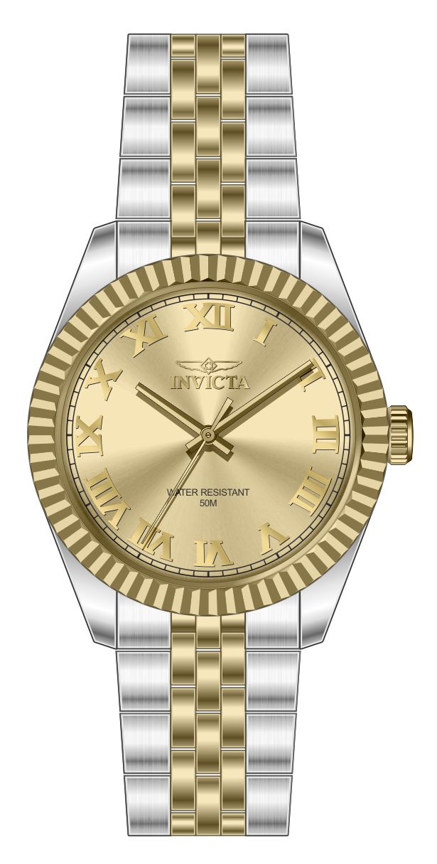 Band Material: Stainless Steel, Band Tone: Steel,Gold, Band Width: 22MM, Band Length: 178MM, Crown Type: Push, Case Material: Stainless Steel, Case Tone: Steel, Case Size [mm]: 43, Crystal Type: Mineral, Dial Material: Brass, Dial Color: Gold .Purchasing these parts and having a non-authorized repair center open your watch voids all manufacturing warranties. Invicta cannot guarantee the quality standards of an altered timepiece, the standard 3-year limited warranty on Invicta timepieces shall be invalid if the timepiece is serviced at any time by an unauthorized repair center. This includes battery replacements, which must be done at an Invicta authorized repair center in order to maintain the eligibility of the warranty. Please follow the link below to learn more about Invicta's warranty.https://cdn.invictawatch.com/www/files/invicta-warranty-2018.pdf