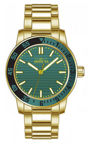 Band Material: Stainless Steel, Band Tone: Gold, Band Width: 22MM, Band Length: 176MM, Crown Type: Push, Case Material: Stainless Steel, Case Tone: Gold, Case Size [mm]: 45, Case Back: Solid, Material of Hands: Brass, Color of Hands: Gold,Luminous, Crystal Type: Mineral, Bezel Material: Aluminum, Dial Material: Brass, Dial Color: Green, Dial Pattern: Embossed pattern .Purchasing these parts and having a non-authorized repair center open your watch voids all manufacturing warranties. Invicta cannot guarantee the quality standards of an altered timepiece, the standard 3-year limited warranty on Invicta timepieces shall be invalid if the timepiece is serviced at any time by an unauthorized repair center. This includes battery replacements, which must be done at an Invicta authorized repair center in order to maintain the eligibility of the warranty. Please follow the link below to learn more about Invicta's warranty.https://cdn.invictawatch.com/www/files/invicta-warranty-2018.pdf