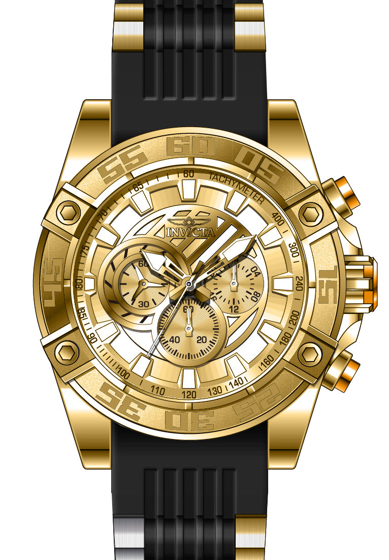 Band Material: Stainless Steel,Silicone, Band Tone: Gold,Black, Band Width: 26MM, Band Length: 200MM, Crown Type: Push, Case Material: Stainless Steel, Case Tone: Gold, Case Size [mm]: 52, Case Back: Solid, Material of Hands: Metal, Color of Hands: Gold, Crystal Type: Flame Fusion, Bezel Material: Stainless Steel,Aluminum, Dial Material: Metal, Dial Color: Gold, Dial Pattern: Sun-ray Finish .Purchasing these parts and having a non-authorized repair center open your watch voids all manufacturing warranties. Invicta cannot guarantee the quality standards of an altered timepiece, the standard 3-year limited warranty on Invicta timepieces shall be invalid if the timepiece is serviced at any time by an unauthorized repair center. This includes battery replacements, which must be done at an Invicta authorized repair center in order to maintain the eligibility of the warranty. Please follow the link below to learn more about Invicta's warranty.https://cdn.invictawatch.com/www/files/invicta-warranty-2018.pdf