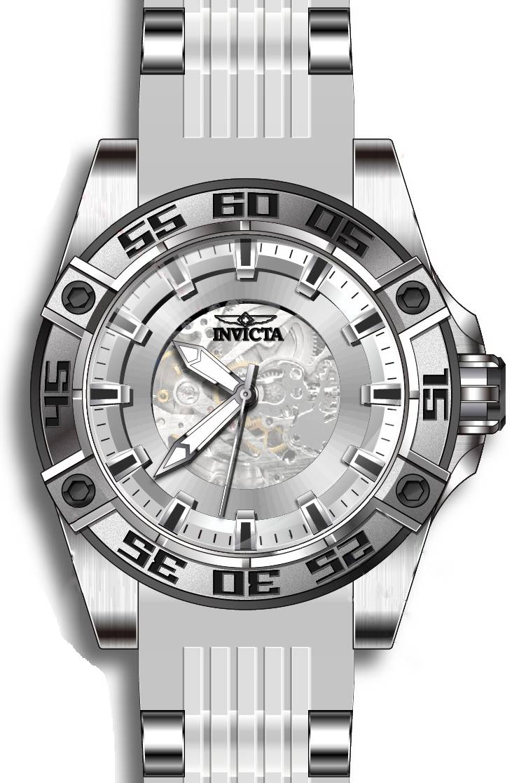 Band Material: Stainless Steel,Silicone, Band Tone: Steel,White, Band Width: 26MM, Band Length: 200MM, Crown Type: Push, Case Material: Stainless Steel, Case Tone: Steel, Case Size [mm]: 52, Case Back: Exhibition, Material of Hands: Metal, Color of Hands: Silver, Crystal Type: Flame Fusion, Bezel Material: Stainless Steel,Aluminum, Dial Material: Metal, Dial Color: Silver, Dial Pattern: Sun-ray Finish .Purchasing these parts and having a non-authorized repair center open your watch voids all manufacturing warranties. Invicta cannot guarantee the quality standards of an altered timepiece, the standard 3-year limited warranty on Invicta timepieces shall be invalid if the timepiece is serviced at any time by an unauthorized repair center. This includes battery replacements, which must be done at an Invicta authorized repair center in order to maintain the eligibility of the warranty. Please follow the link below to learn more about Invicta's warranty.https://cdn.invictawatch.com/www/files/invicta-warranty-2018.pdf