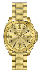 Band Material: Stainless Steel, Band Tone: Gold, Band Width: 22MM, Band Length: 182MM, Crown Type: Push, Case Material: Stainless Steel, Case Tone: Gold, Case Size [mm]: 46, Case Back: Solid, Material of Hands: Brass, Color of Hands: White,Gold, Crystal Type: Mineral, Bezel Material: None, Dial Material: Brass, Dial Color: Gold, Dial Pattern: Sun-ray Finish .Purchasing these parts and having a non-authorized repair center open your watch voids all manufacturing warranties. Invicta cannot guarantee the quality standards of an altered timepiece, the standard 3-year limited warranty on Invicta timepieces shall be invalid if the timepiece is serviced at any time by an unauthorized repair center. This includes battery replacements, which must be done at an Invicta authorized repair center in order to maintain the eligibility of the warranty. Please follow the link below to learn more about Invicta's warranty.https://cdn.invictawatch.com/www/files/invicta-warranty-2018.pdf