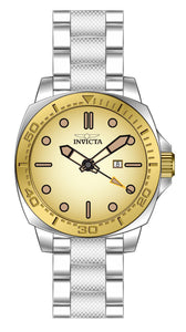 Band Material: Stainless Steel, Band Tone: Steel, Band Width: 22MM, Band Length: 182MM, Crown Type: Push, Case Material: Stainless Steel, Case Tone: Gold,Steel, Case Size [mm]: 46, Case Back: Solid, Material of Hands: Metal, Color of Hands: Black,Yellow,Luminous, Crystal Type: Mineral, Bezel Material: None, Dial Material: Brass, Dial Color: Yellow, Dial Pattern: Gradient Pattern .Purchasing these parts and having a non-authorized repair center open your watch voids all manufacturing warranties. Invicta cannot guarantee the quality standards of an altered timepiece, the standard 3-year limited warranty on Invicta timepieces shall be invalid if the timepiece is serviced at any time by an unauthorized repair center. This includes battery replacements, which must be done at an Invicta authorized repair center in order to maintain the eligibility of the warranty. Please follow the link below to learn more about Invicta's warranty.https://cdn.invictawatch.com/www/files/invicta-warranty-2018.pdf