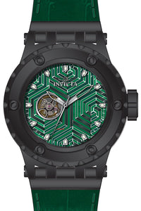 Band Material: Stainless Steel,Leather, Band Tone: Black,Green, Band Width: 31MM, Band Length: 220MM, Crown Type: Screw Down, Case Material: Stainless Steel, Case Tone: Black, Case Size [mm]: 52.0, Case Back: Exhibition, Material of Hands: Metal, Color of Hands: Silver,Luminous, Crystal Type: Flame Fusion, Bezel Material: Stainless Steel, Dial Material: Metal, Dial Color: Black,Green, Dial Pattern: Sun-ray Finish .Purchasing these parts and having a non-authorized repair center open your watch voids all manufacturing warranties. Invicta cannot guarantee the quality standards of an altered timepiece, the standard 3-year limited warranty on Invicta timepieces shall be invalid if the timepiece is serviced at any time by an unauthorized repair center. This includes battery replacements, which must be done at an Invicta authorized repair center in order to maintain the eligibility of the warranty. Please follow the link below to learn more about Invicta's warranty.https://cdn.invictawatch.com/www/files/invicta-warranty-2018.pdf