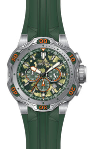 Band Material: Silicone, Band Tone: Green, Band Width: 30.8MM, Band Length: 200MM, Crown Type: Push, Case Material: Stainless Steel,Aluminum, Case Tone: Orange,Green,Steel, Case Size [mm]: 52.5, Case Back: Solid, Material of Hands: Metal, Color of Hands: Silver,Orange,Luminous, Crystal Type: Mineral, Bezel Material: Stainless Steel,Aluminum, Dial Material: Metal, Dial Color: Green,Light Green, Dial Pattern: Camouflage Pattern .Purchasing these parts and having a non-authorized repair center open your watch voids all manufacturing warranties. Invicta cannot guarantee the quality standards of an altered timepiece, the standard 3-year limited warranty on Invicta timepieces shall be invalid if the timepiece is serviced at any time by an unauthorized repair center. This includes battery replacements, which must be done at an Invicta authorized repair center in order to maintain the eligibility of the warranty. Please follow the link below to learn more about Invicta's warranty.https://cdn.invictawatch.com/www/files/invicta-warranty-2018.pdf