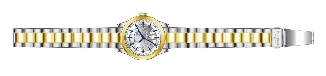 INVICTA Vintage Lady 34mm Stainless Steel Steel White dial JSD-006SY Mechanical , Band Material: Stainless Steel, Band Tone: Steel,Gold, Band Size [mm]: 16, Band Length [mm]: 175, Buckle Type: Fold over push button , Crown Type : Push, Case Material : Stainless Steel, Case Tone : Steel, Case Size (mm) : 34, Case Back : Exhibition, Material of Hands : Metal, Color of Hands : Blue, Crystal Type : Flame Fusion, Bezel Material : Stainless Steel, Dial Material : Metal, Dial Color : White, Dial Pattern : Sun-ray Finish .Purchasing these parts and having a non-authorized repair center open your watch voids all manufacturing warranties. Invicta cannot guarantee the quality standards of an altered timepiece, the standard 3-year limited warranty on Invicta timepieces shall be invalid if the timepiece is serviced at any time by an unauthorized repair center. This includes battery replacements, which must be done at an Invicta authorized repair center in order to maintain the eligibility of the warranty. Please follow the link below to learn more about Invicta's warranty.https://cdn.invictawatch.com/www/files/invicta-warranty-2018.pdf
