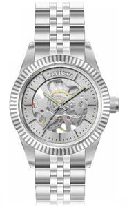 INVICTA Vintage Lady 36mm Stainless Steel Steel Silver dial JSD-006SY Mechanical , Band Material: Stainless Steel, Band Tone: Steel, Band Size [mm]: 18, Band Length [mm]: 210, Buckle Type: Fold over safety , Crown Type : Push, Case Material : Stainless Steel, Case Tone : Steel, Case Size (mm) : 36, Case Back : Exhibition, Material of Hands : Metal, Color of Hands : Silver, Crystal Type : Flame Fusion, Bezel Material : Stainless Steel, Dial Material : Metal, Dial Color : Silver .Purchasing these parts and having a non-authorized repair center open your watch voids all manufacturing warranties. Invicta cannot guarantee the quality standards of an altered timepiece, the standard 3-year limited warranty on Invicta timepieces shall be invalid if the timepiece is serviced at any time by an unauthorized repair center. This includes battery replacements, which must be done at an Invicta authorized repair center in order to maintain the eligibility of the warranty. Please follow the link below to learn more about Invicta's warranty.https://cdn.invictawatch.com/www/files/invicta-warranty-2018.pdf