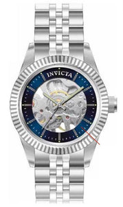 INVICTA Vintage Lady 36mm Stainless Steel Steel Blue dial JSD-006SY Mechanical , Band Material: Stainless Steel, Band Tone: Steel, Band Size [mm]: 18, Band Length [mm]: 210, Buckle Type: Fold over safety , Crown Type : Push, Case Material : Stainless Steel, Case Tone : Steel, Case Size (mm) : 36, Case Back : Exhibition, Material of Hands : Metal, Color of Hands : Silver, Crystal Type : Flame Fusion, Bezel Material : Stainless Steel, Dial Material : Metal, Dial Color : Blue .Purchasing these parts and having a non-authorized repair center open your watch voids all manufacturing warranties. Invicta cannot guarantee the quality standards of an altered timepiece, the standard 3-year limited warranty on Invicta timepieces shall be invalid if the timepiece is serviced at any time by an unauthorized repair center. This includes battery replacements, which must be done at an Invicta authorized repair center in order to maintain the eligibility of the warranty. Please follow the link below to learn more about Invicta's warranty.https://cdn.invictawatch.com/www/files/invicta-warranty-2018.pdf