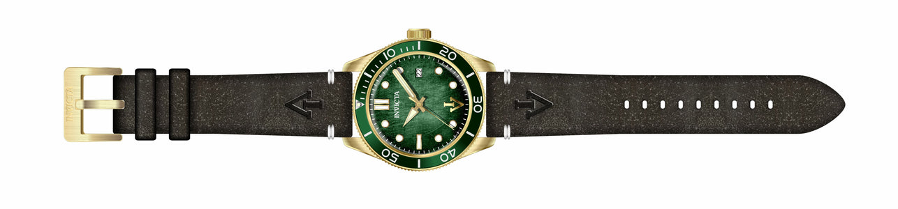INVICTA Vintage Men 44mm Stainless Steel Gold Green dial NH35A Automatic , Band Material: Leather, Band Tone: Dark Brown, Band Size [mm]: 22, Band Length [mm]: 195, Buckle Type: Buckle , Crown Type : Push, Case Material : Stainless Steel, Case Tone : Gold, Case Size (mm) : 44, Case Back : Solid, Material of Hands : Metal, Color of Hands : Gold,Luminous, Crystal Type : Flame Fusion, Bezel Material : Stainless Steel, Dial Material : Metal, Dial Color : Green, Dial Pattern : None .Purchasing these parts and having a non-authorized repair center open your watch voids all manufacturing warranties. Invicta cannot guarantee the quality standards of an altered timepiece, the standard 3-year limited warranty on Invicta timepieces shall be invalid if the timepiece is serviced at any time by an unauthorized repair center. This includes battery replacements, which must be done at an Invicta authorized repair center in order to maintain the eligibility of the warranty. Please follow the link below to learn more about Invicta's warranty.https://cdn.invictawatch.com/www/files/invicta-warranty-2018.pdf